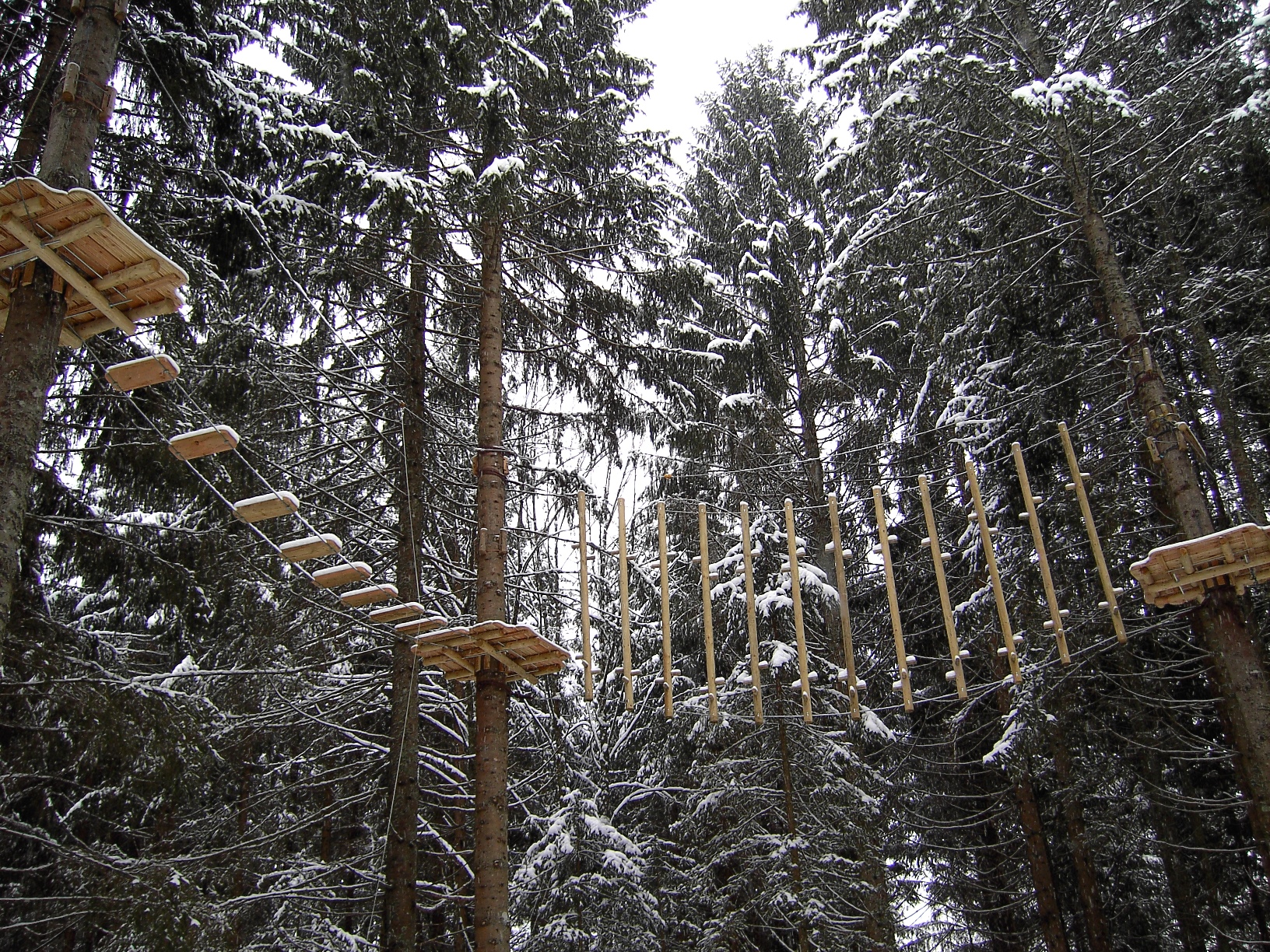Übrigens: Ein Ausstieg aus dem Hochseilgarten ist jederzeit möglich.