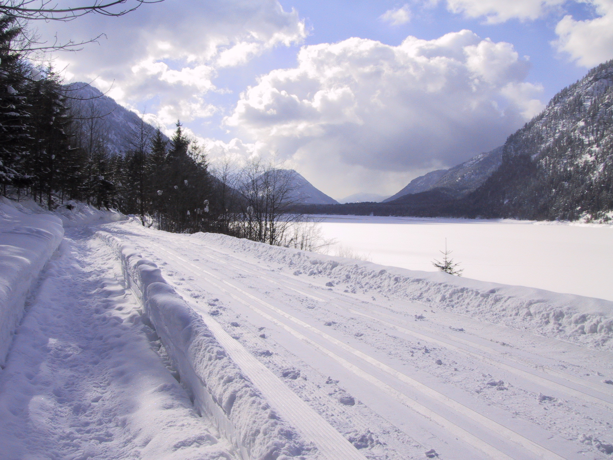 Direkt am Hotel Jäger von Fall findet ihr den Einstieg zur Langlaufloipe nach Vorderriss.
